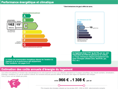Montant estimé des dépenses annuelles d’énergie pour un usage standard : entre 966€ et 1 308€ par an. Prix moyens des énergies indexés sur l’année 2021,2022, 2023 (abonnements compris)