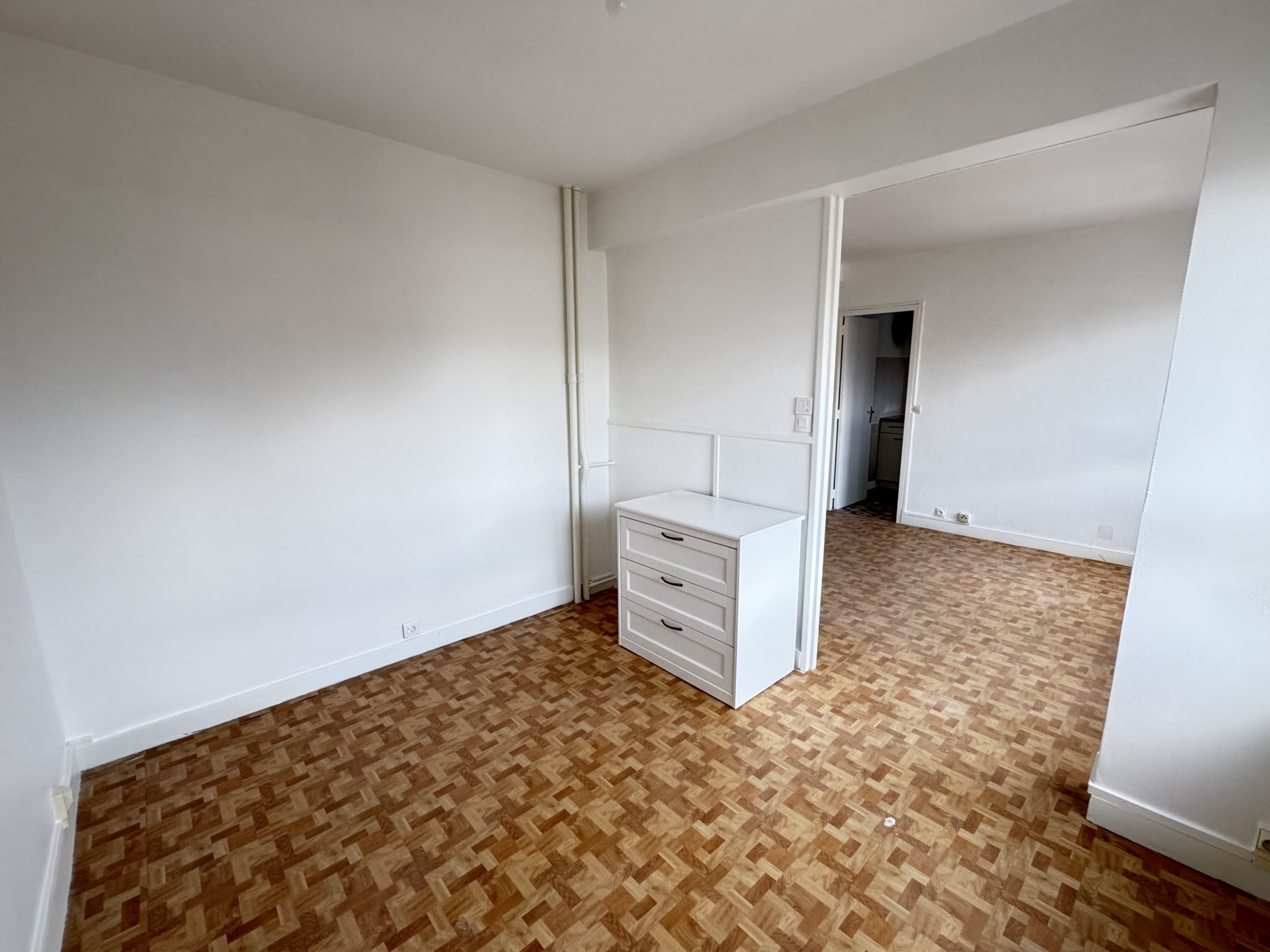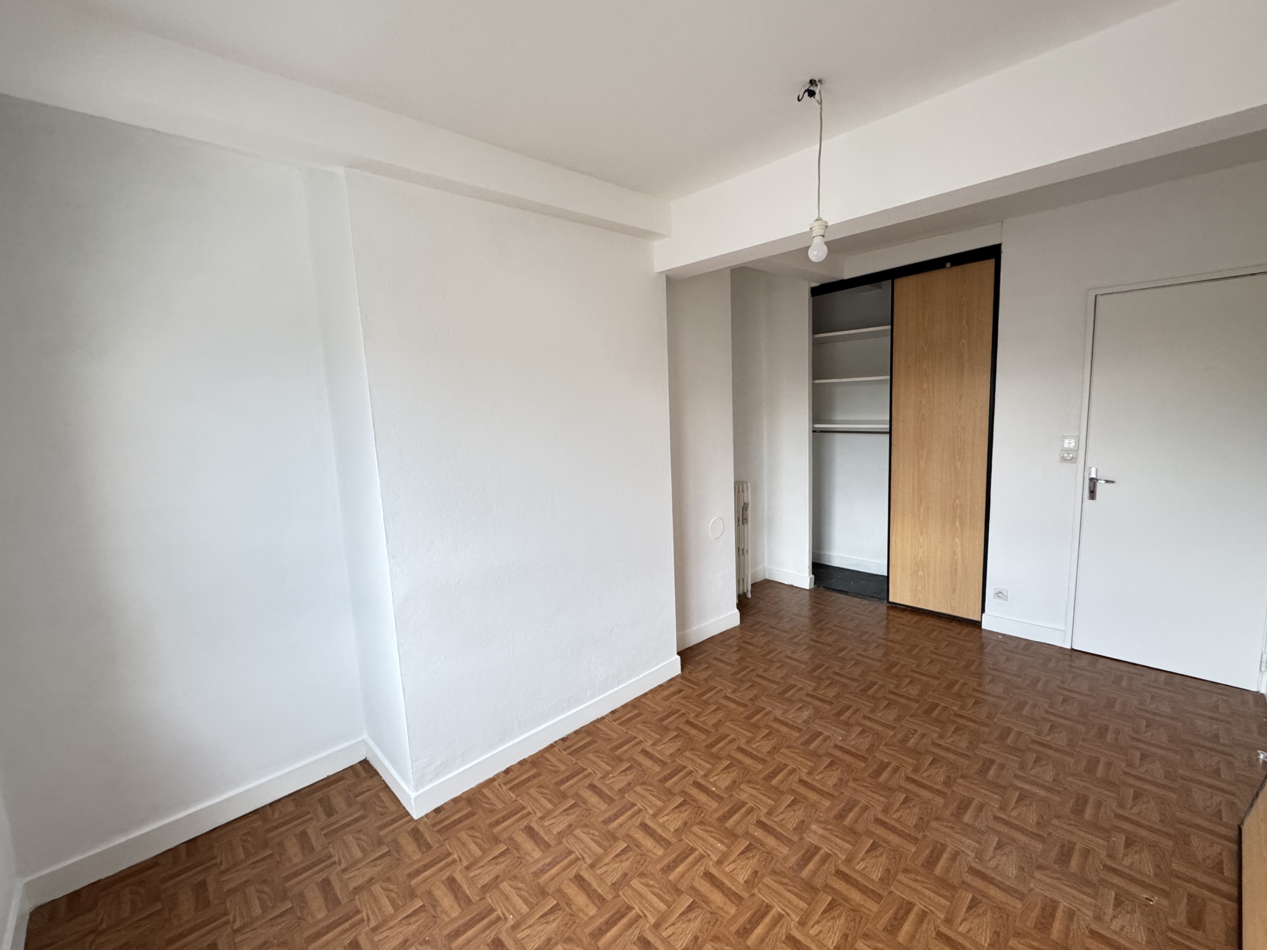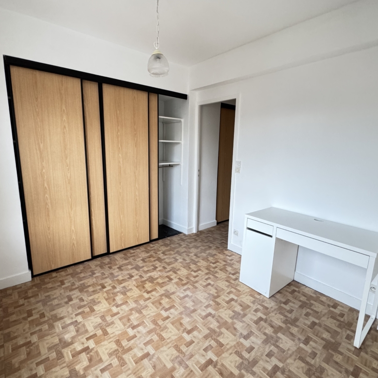Ce bien comprend une entrée, une première chambre avec placard, un dégagement avec placard, une deuxième chambre avec placard, un salon, un séjour (possibilité 3ème chambre), une cuisine séparée aménagée avec hotte et frigo, WC séparé, salle de douche.